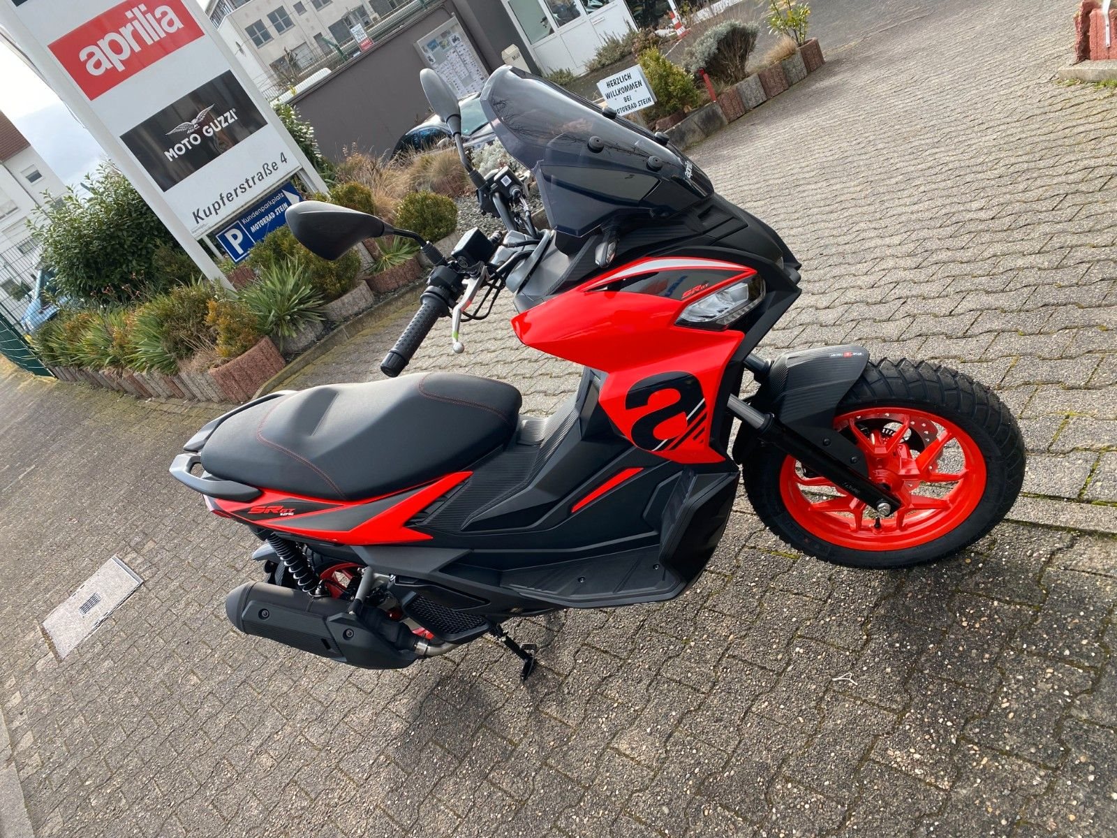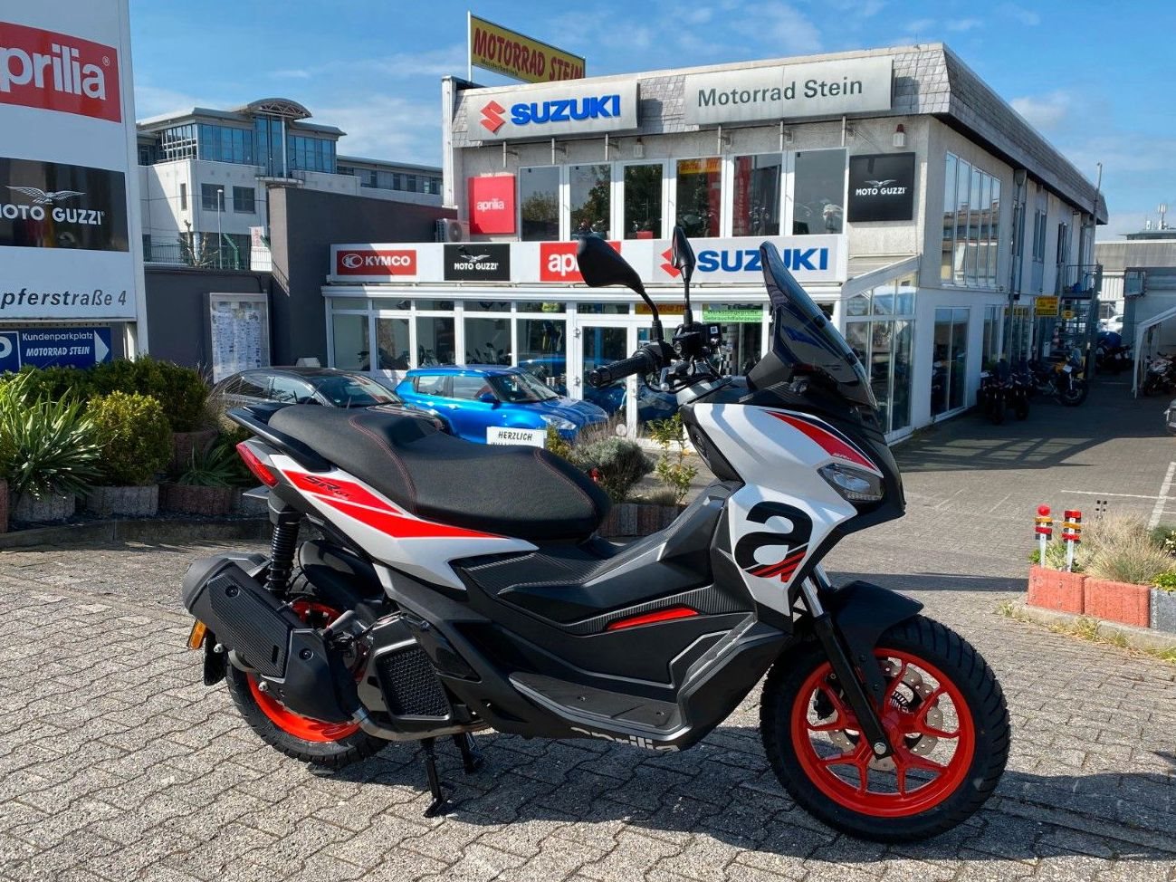 Die Grundfarben, Rote Felgen und die Sport Version hat einen "Aprilia" Schriftzug am Bug und ein "a" an den Seitenverkleidungen