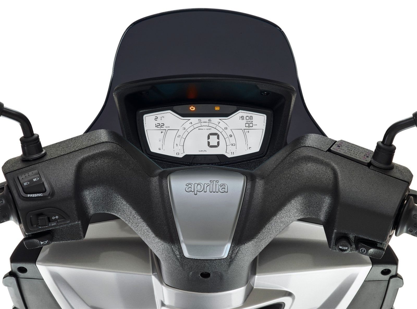 Das große volldigitale LCD-Multifunktions-Dashboard des Cockpits liefert intuitiv alle wichtigen Informationen: Geschwindigkeit, Kraftstoffstand, Motor- und Lufttemperatur werden angezeigt. Weitere Informationen können per Knopfdruck an der Griffarmatur abgerufen werden. Praktisch ist auch das Handschuhfach mit USB-Anschluss, sodass Sie auch unterwegs Ihr Smartphone laden können.