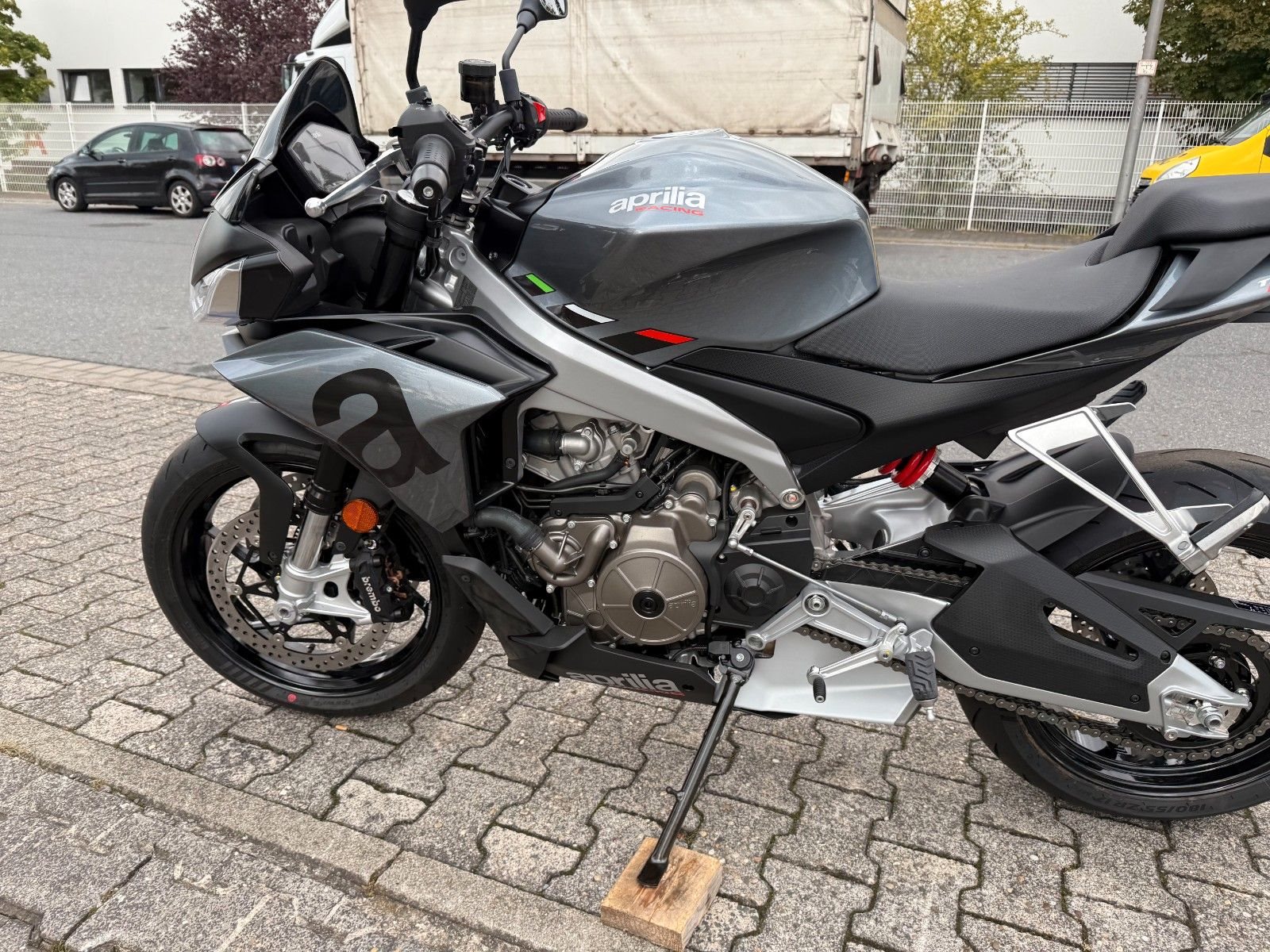 Hochstabil sind der leichte Brückenrahmen und die asymmetrische Zweiarmschwinge aus Aluminium-Druckguss gefertigt. Perfekt abgestimmt, sind das direkt angelenkte Kayaba-Monofederbein und die Upside-down-Gabel individuell einstellbar. Komfortabel im Sattel, den "Superbike-Lenker" sicher im Griff, fährt sich die Tuono 660 extrem leichtfüßig, agil und handlich.
