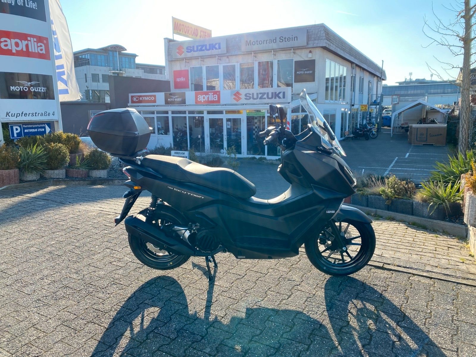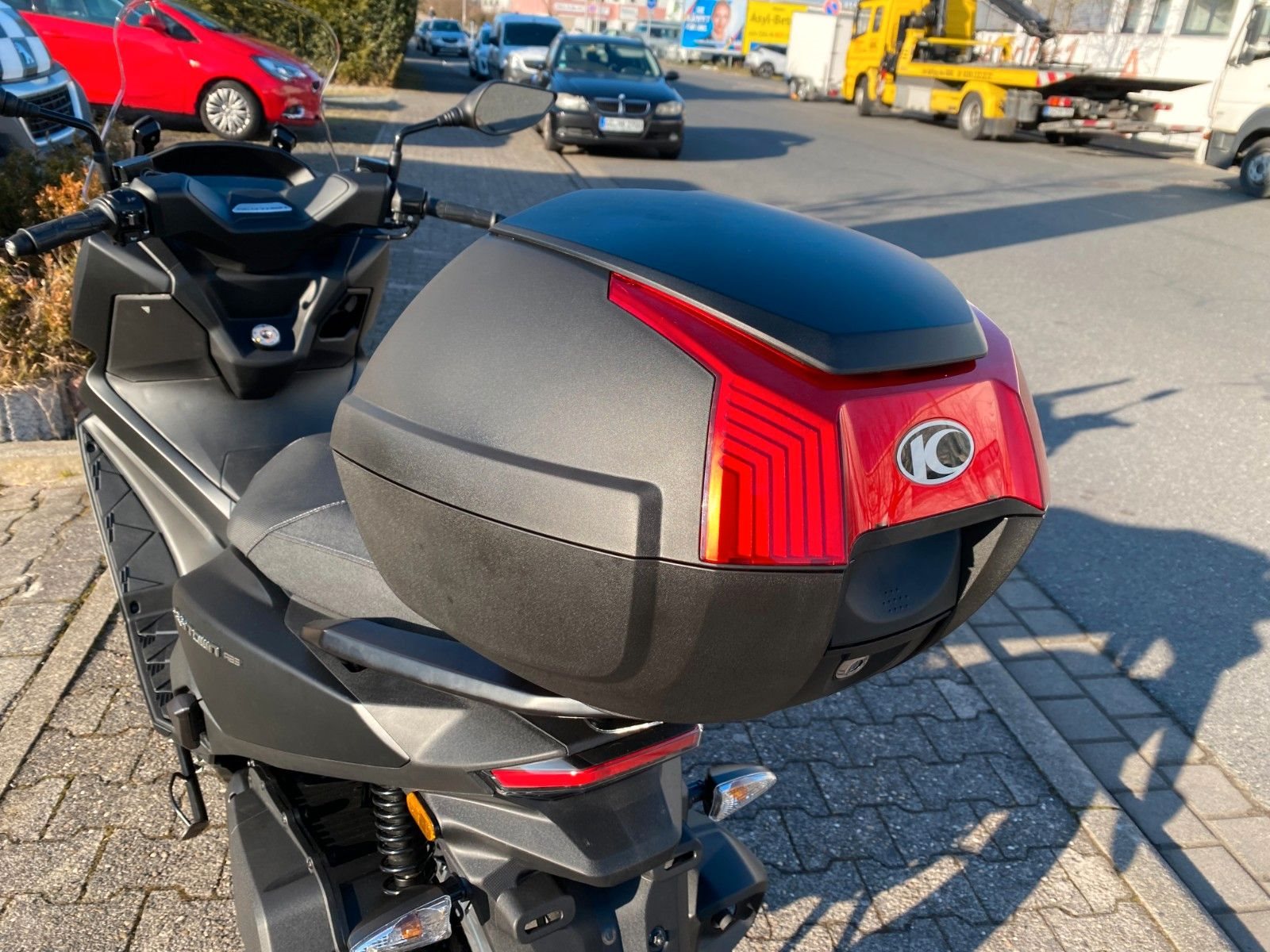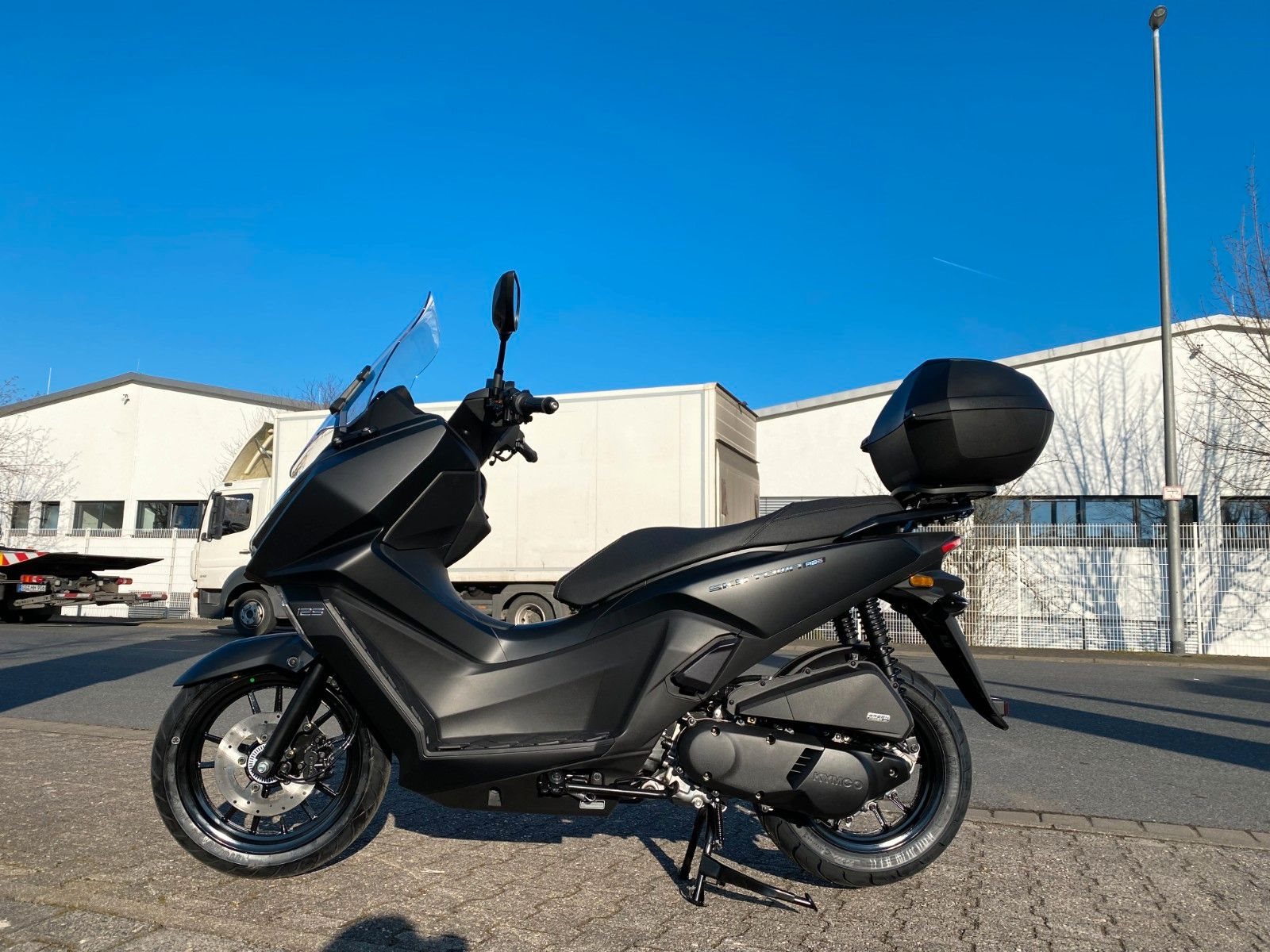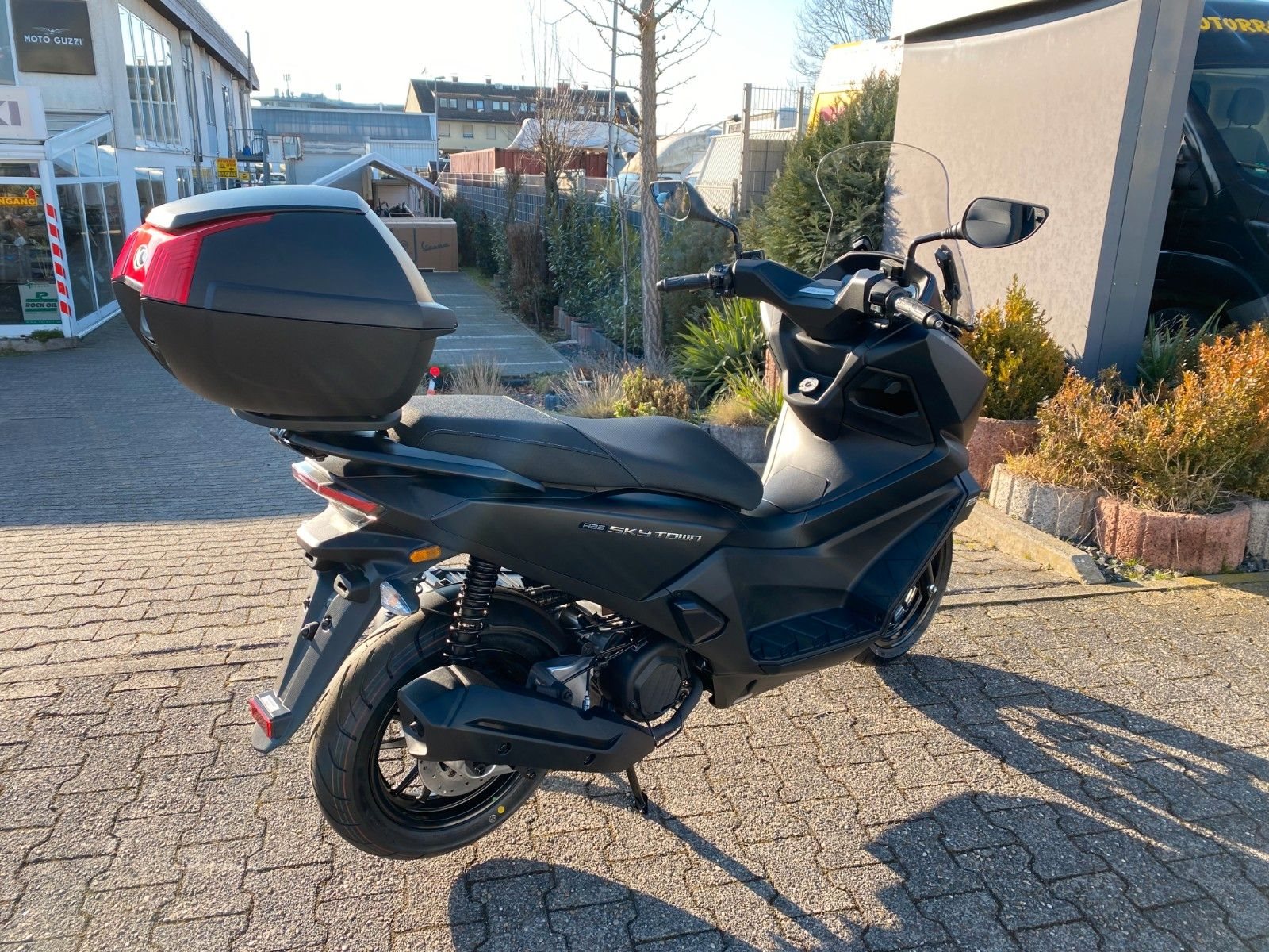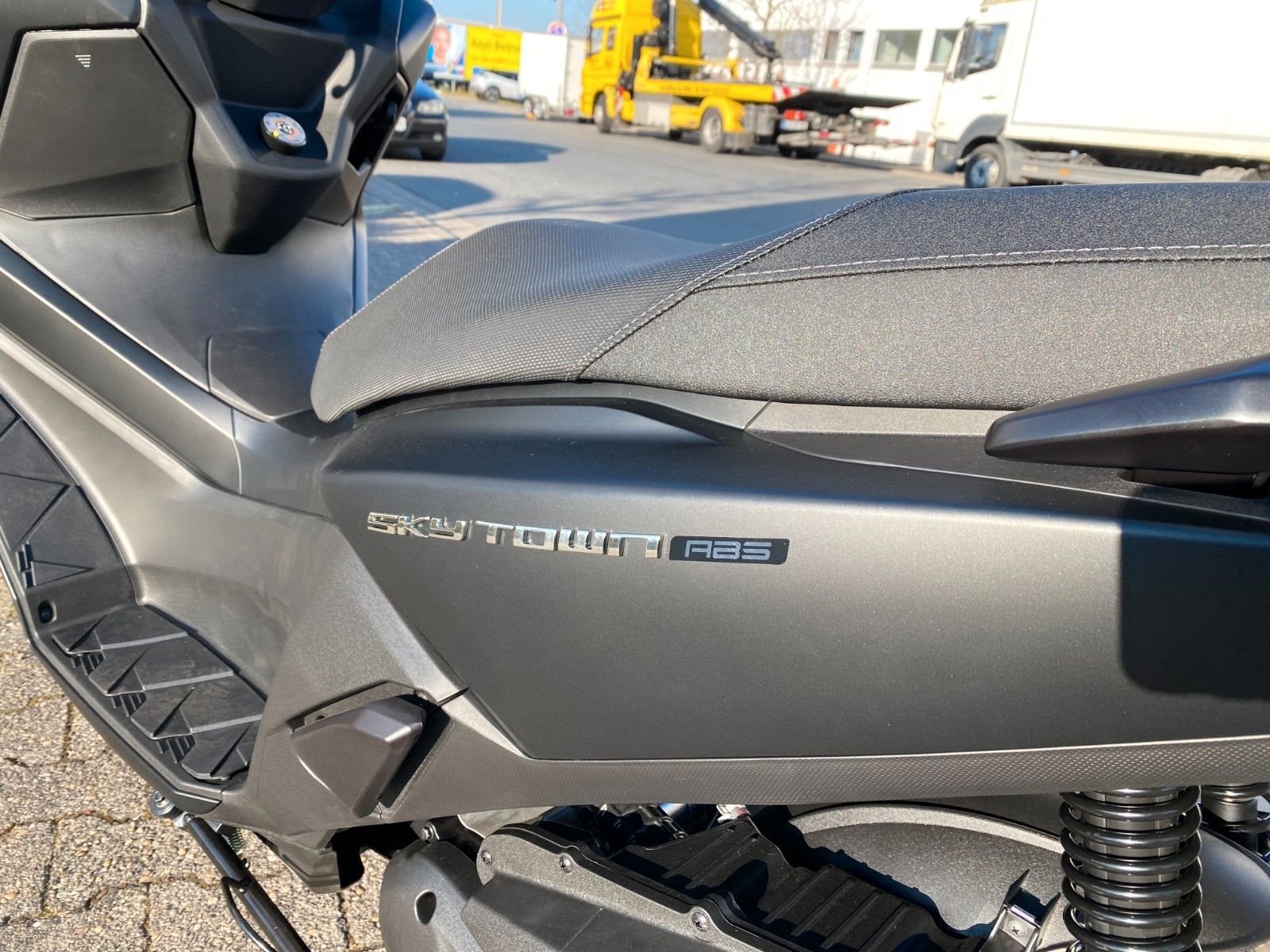Der SKY TOWN 125i ABS verbindet Dynamik mit umweltbewusster Effizienz. Der 125-ccm-Motor liefert 11 PS und verfügt über das Multi-Vortex-System, das deutlich Kraftstoff spart und Emissionen senkt - ideal für die Stadt. Das leichte Chassis mit stabiler Aluminium-Rahmenstruktur sorgt für ein müheloses, kontrolliertes Fahrgefühl. Dank kurzem Radstand, nur 126 kg Gewicht und einer optimalen Sitzhöhe ist dieser Roller besonders wendig und für Fahrer jeder Körpergröße angenehm zu handhaben - perfekt für enge Straßen.Das ABS Bremssystem von Bosch und die automatisch aktivierten LED-Lichter bieten zusätzliche Sicherheit im Stadtverkehr, während das Windschild den Fahrkomfort verbessert. Der praktische Stauraum unter der Sitzbank bietet Platz für einen Integralhelm und das serienmäßige Topcase erhöht die Kapazität weiter. Ein USB-Anschluss (Typ A & C) hält mobile Geräte geladen, während das LCD-Dashboard jederzeit klare Sicht auf alle wichtigen Infos bietet.Der SKY TOWN 125i ABS ist die perfekte Wahl für alle, die einen agilen, nachhaltigen Scooter für den urbanen Alltag suchen. Dank Euro5+ Standard und einem Verbrauch von nur 2,5 Litern auf 100 km ist dieser der Roller besonders sparsam und emissionsarm.Gut ablesbares LCD-DashboardABS-BremssystemIntergrierter USB Port