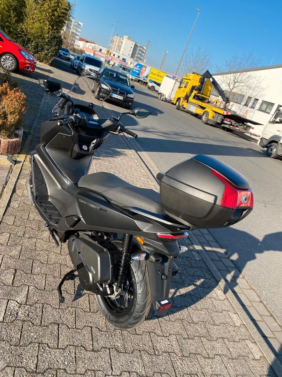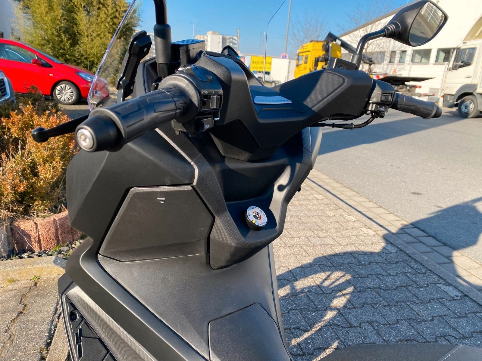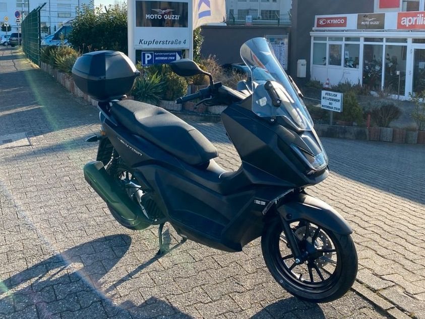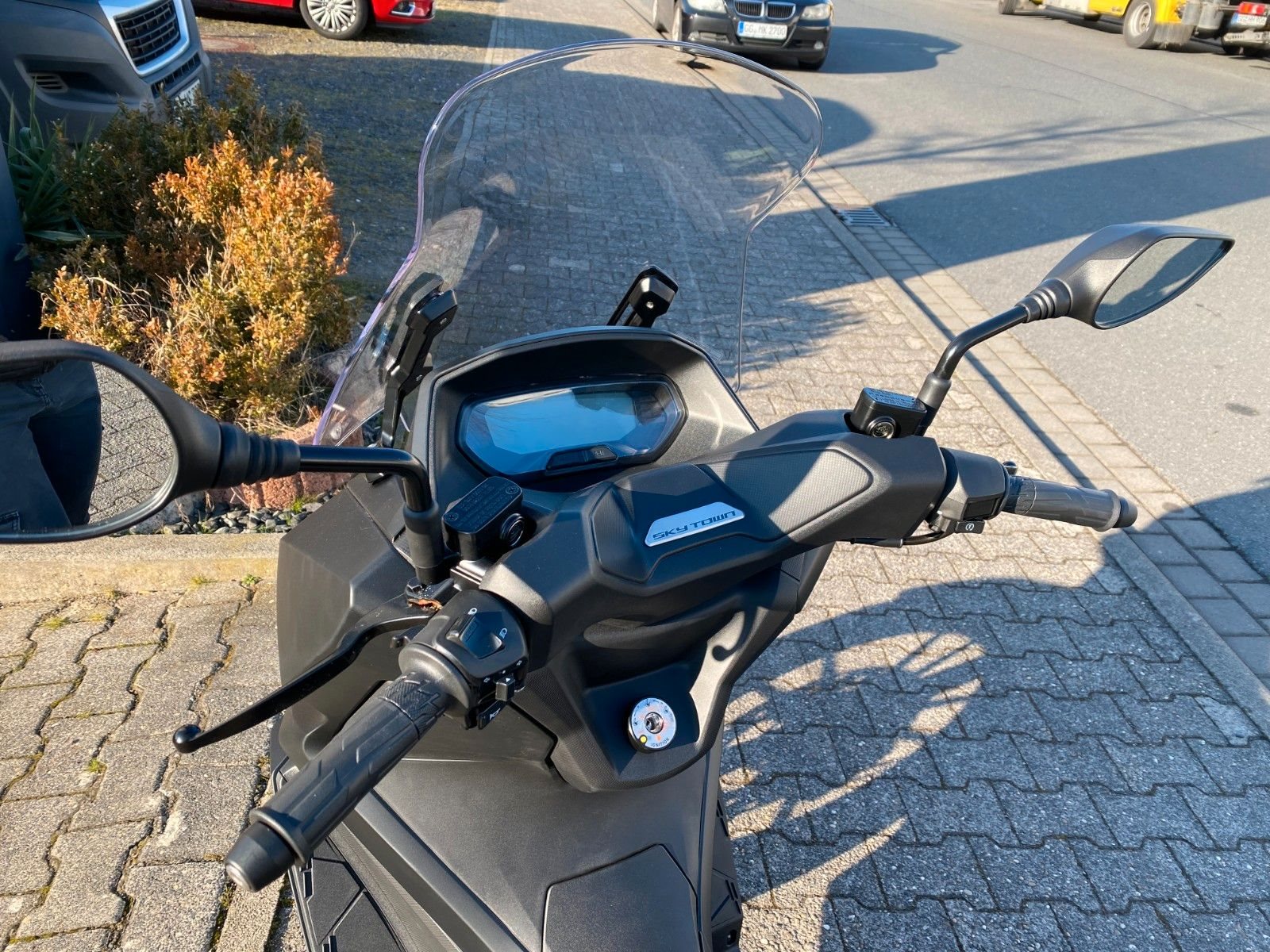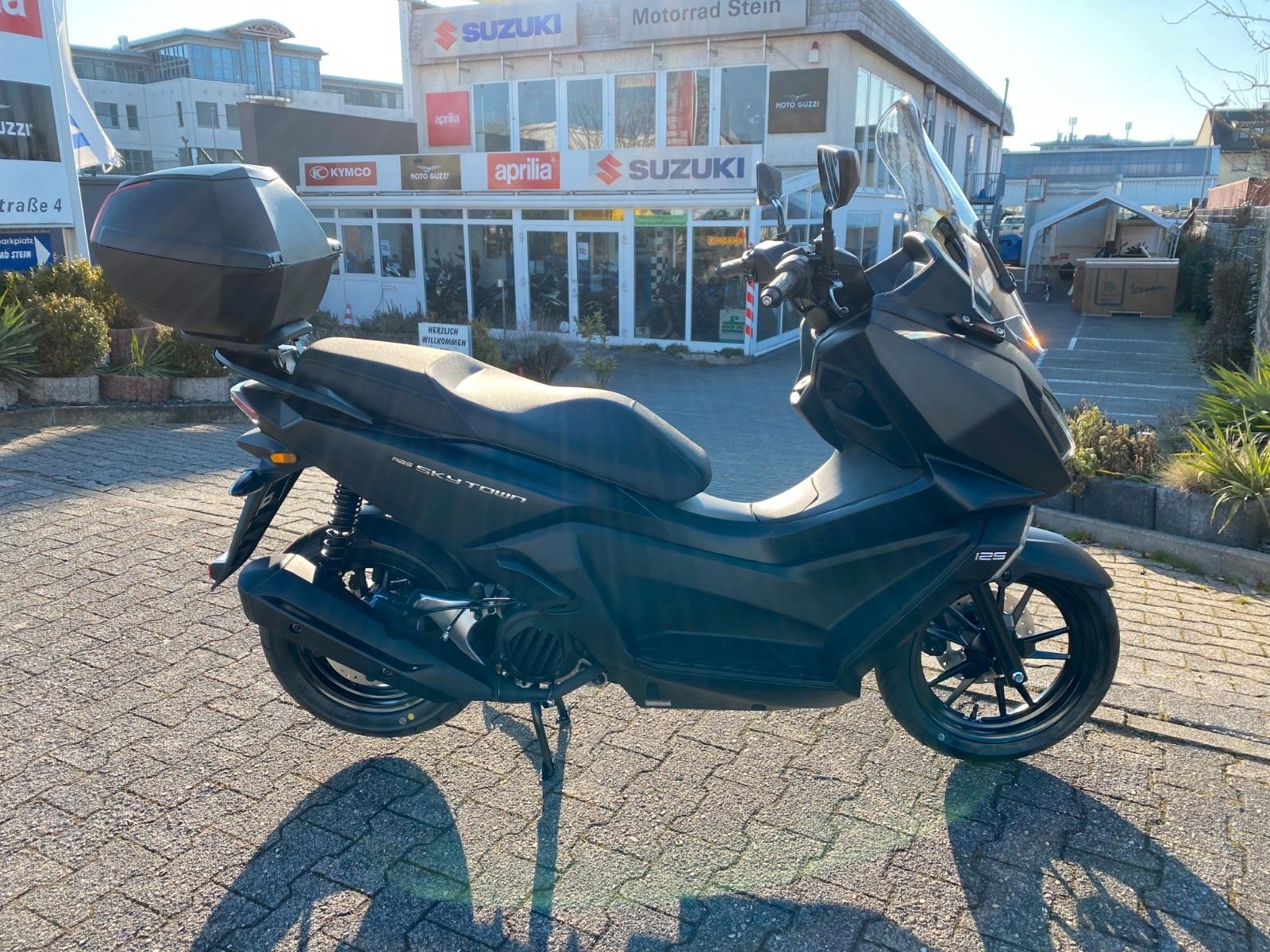 Der SKY TOWN 125i ABS verbindet Dynamik mit umweltbewusster Effizienz. Der 125-ccm-Motor liefert 11 PS und verfügt über das Multi-Vortex-System, das deutlich Kraftstoff spart und Emissionen senkt - ideal für die Stadt. Das leichte Chassis mit stabiler Aluminium-Rahmenstruktur sorgt für ein müheloses, kontrolliertes Fahrgefühl. Dank kurzem Radstand, nur 126 kg Gewicht und einer optimalen Sitzhöhe ist dieser Roller besonders wendig und für Fahrer jeder Körpergröße angenehm zu handhaben - perfekt für enge Straßen.Das ABS Bremssystem von Bosch und die automatisch aktivierten LED-Lichter bieten zusätzliche Sicherheit im Stadtverkehr, während das Windschild den Fahrkomfort verbessert. Der praktische Stauraum unter der Sitzbank bietet Platz für einen Integralhelm und das serienmäßige Topcase erhöht die Kapazität weiter. Ein USB-Anschluss (Typ A & C) hält mobile Geräte geladen, während das LCD-Dashboard jederzeit klare Sicht auf alle wichtigen Infos bietet.Der SKY TOWN 125i ABS ist die perfekte Wahl für alle, die einen agilen, nachhaltigen Scooter für den urbanen Alltag suchen. Dank Euro5+ Standard und einem Verbrauch von nur 2,5 Litern auf 100 km ist dieser der Roller besonders sparsam und emissionsarm.Gut ablesbares LCD-DashboardABS-BremssystemIntergrierter USB Port