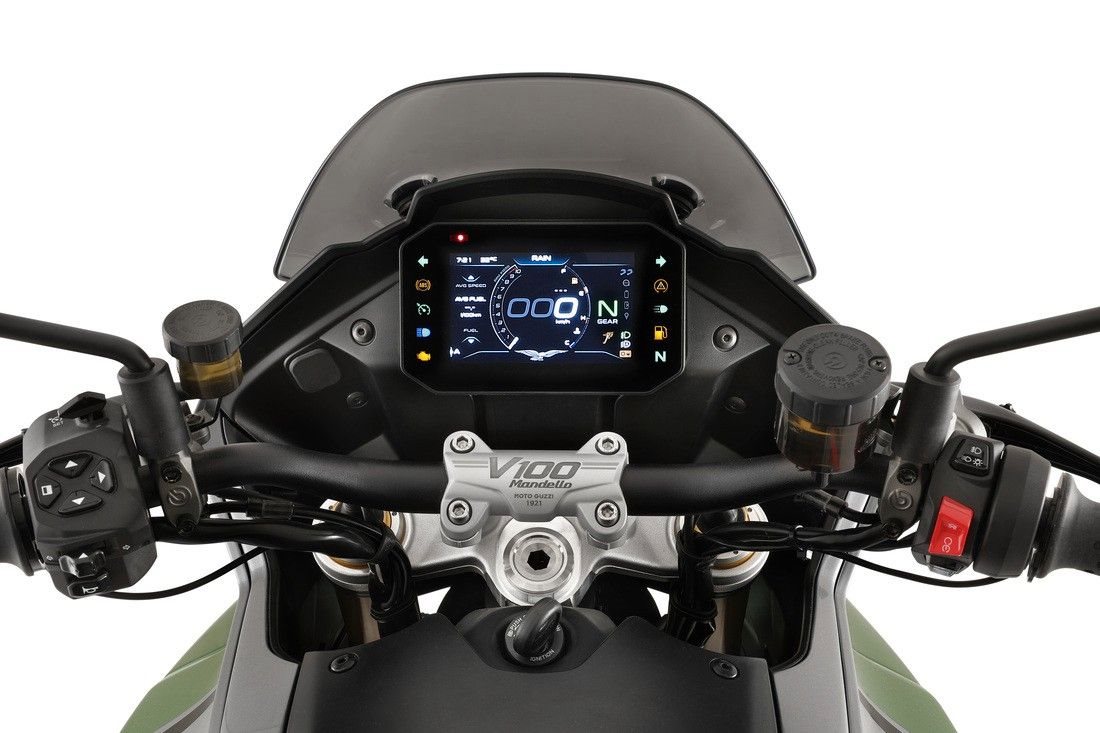 Die Moto Guzzi V100 Mandello verkörpert mehr als ein Jahrhundert technologischer Innovation. Dazu zählen: das semiaktive Öhlins Smart EC 2.0 Fahrwerk, Full-Ride-by-Wire mit vier Riding Modes, die 6-Achsen-Inertiaplattform, das Kurven-ABS, der Tempomat sowie das 5-Zoll-TFT-Farbdisplay. Last but not least: Die Moto Guzzi Multimedia-Plattform, über die Sie Ihr Smartphone mit der Bordelektronik der V100 Mandello koppeln, Telefonie, Entertainment, Navigation und vieles mehr nutzen können.