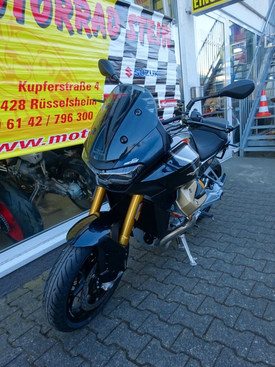 Sind Sie bereit für ein vollkommen neues Kapitel Motorradgeschichte?Die V100 Mandello ist die perfekte Symbiose zwischen den dynamischen Qualitäten eines Roadsters und dem Komfort eines vollwertigen Tourers. Sie lässt jede Kurve zu einem Hochgenuss werden und garantiert Fahrer und Beifahrer auch auf langen Touren ein Höchstmaß an Komfort. On top bietet die V100 eine Vielzahl neuester Technologien, wie das bisher einzigartige adaptive Aerodynamiksystem, die einen einzigartigen Schritt in die Zukunft ankündigen.